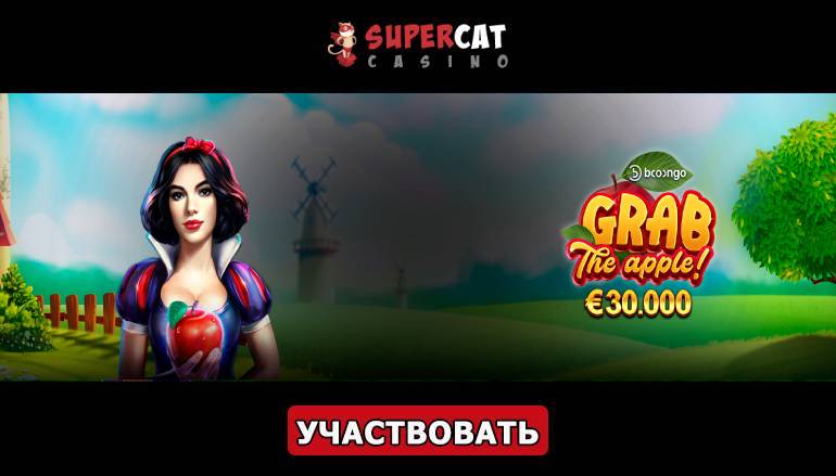 Скорее присоединяйтесь к турниру «Grab the Apple!» в казино СуперКет и заберите максимальную часть от растущего призового фонда, который стартует с 30 тысяч евро! Ну а для того, чтобы узнать об остальных бонусных предложениях и промо акциях данного игорного заведения, ознакомьтесь с нашим обзором казино СуперКет.