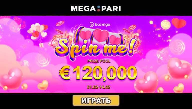 В период с 1 по 14 февраля заходите на сайт Мегапари (Megapari) и участвуйте в соревновании. Сыграв в свою любимую игру Booongo, Вы можете стать обладателем одного из многочисленных денежных призов. Играйте активнее и Вам обязательно улыбнется удача. Новый зрелищный турнир «Spin me!» от Booongo заставит вас прыгать от радости!