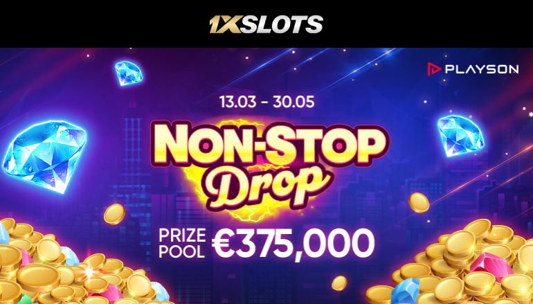Вам нравятся сериалы? Если да, то новая многосезонная сага от компании Playson вас непременно покорит. Популярный разработчик видеослотов приглашает вас принять участие в нереальной сетевой промо акции «Non-Stop Drop» в казино 1хСлотс. Готовы спойлерить, что сезонов будет десять, а общий призовой фонд составит 375 тысяч евро! Присоединяйтесь к масштабному мероприятию и станьте главной звездой этой саги, получая свою долю выигрыша каждую неделю и каждый месяц.