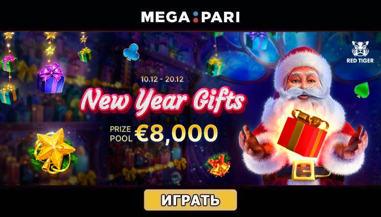 Скорее присоединяйтесь к праздничной акции «Новогодние подарки» в Мегапари и забирайте свою долю призового фонда! Ну а для того, чтобы узнать об остальных бонусных предложениях и промо акциях данного игорного заведения, ознакомьтесь с нашим обзором Мегапари.