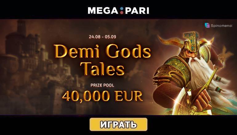 Приближается самое эпичное и легендарное событие уходящего лета! Компания Spinomenal запускает слот-турнир «Demi Gods Tales», в котором Вы станете частью приключений, основанных на древних мифах и легендах. Это мероприятие для тех, кто не боится рисковать и сражаться за ценные призы. Если Вы бесстрашны и полны решимости, то скорее присоединяйтесь к турниру «Сказки богов» в Мегапари с призовым фондом 40 000 евро.