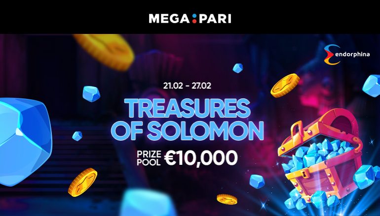 Не пропустите щедрый турнир «Сокровища Соломона» в Мегапари. Наслаждайтесь слотами компании Endorphina и выигрывайте часть призового фонда в размере 10 тысяч евро. Ну а для того, чтобы узнать об остальных бонусных предложениях и промо акциях данного игорного заведения, ознакомьтесь с нашим обзором Мегапари.