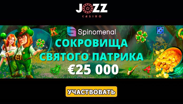 Если Вам по душе ирландский колорит, легенды о лепреконах и других волшебных существах, тогда в период с 16 по 31 марта заходите на сайт казино Джозз (Jozz Casino) и участвуйте в захватывающем турнире. Наслаждайтесь тематическими слотами компании Spinomenal, собирайте турнирные баллы и выигрывайте часть огромного призового фонда размером в 25 тысяч евро. Присоединяйтесь к событию, яркие эмоции и незабываемые впечатления Вам гарантированы!