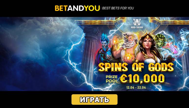 Много призовых денег не бывает — так что, не теряя времени заходите на сайт БетЭндЮ (Betandyou) и присоединяйтесь к сетевой промо акции. Наслаждайтесь лучшими играми популярного разработчика и набирайте турнирные очки за ставки. Получите самую ценную из 15 наград за первое место в таблице лидеров и отпразднуйте победу в захватывающем турнире «Spins of Gods» в БетЭндЮ!