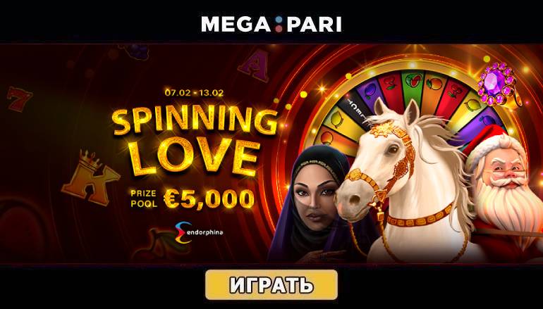 Независимо от того, отмечаете ли Вы День всех влюбленных вдвоем или в одиночестве, Вы сможете отлично провести время. Для этого нужно лишь зайти на сайт Мегапари (Megapari) в период с 7 по 13 февраля и принять участие в тематической промо акции «Spinning love». Это событие подарит незабываемые впечатления всем его участникам, а особенно победителям, которым достанутся награды размером от 50 до 1500 евро!