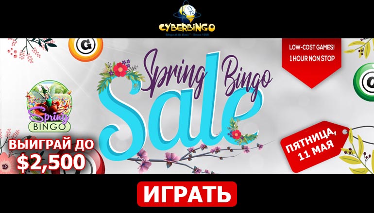 Не хочешь отставать от остальных игроков и готов наравне с другими азартными гемблерами принять участие в весенней бинго распродаже? Чтобы выиграть часть от 2500 долларов в подарок от Кибер Бинго, в первую очередь ты должен быть зарегистрированным игроком этого онлайн игорного заведения! Промо акция действует только один день, в пятницу 11 мая 2018 года! Только в этот день ты можешь отхватить свою долю от грандиозной распродажи!