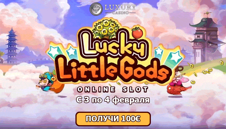 В эти выходные Вы можете не только отдохнуть и расслабиться, но и выиграть денежный приз! Такую потрясающую возможность всем любителям азартных игр предоставляет казино Лакшери (Luxury Casino). Наслаждайтесь игрой на новом слоте «Везучие маленькие боги» (Lucky Little Gods) и становитесь богаче. Благодаря новому видео слоту Вы получите не только незабываемые впечатления, но еще и отличную возможность выиграть 100 евро от казино Лакшери!