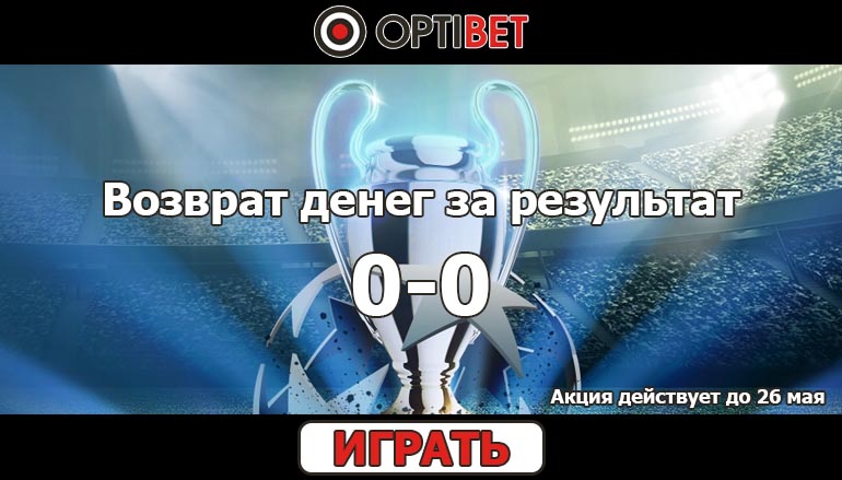 Хочешь разнообразить свой просмотр любимого матча по футболу? Начни играть на сайтах онлайн ставок на спорт в России, чтобы долгожданные футбольные встречи начали приносить тебе прибыль. Более того, на этот раз у тебя выпадает возможность вернуть свои деньги, если ни одна из команд не забьет гол! Тебя ждет возврат денег за результат 0-0 на матчи Лиги Чемпионов и Лиги Европы в Оптибет Спортс (Optibet Sports)! Грех не воспользоваться таким шансом!