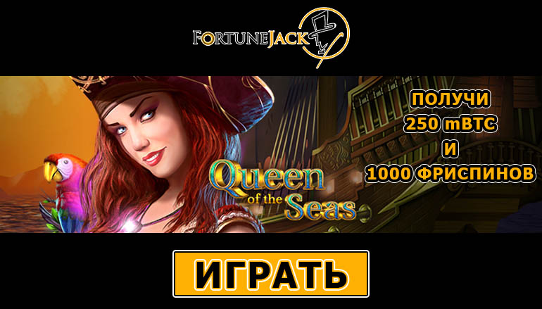 Вы готовы к захватывающему морскому путешествию вместе с пиратами? Королева морей приглашает Вас отправиться на своем корабле на поиски сокровищ. Это незабываемое приключение может стать реальностью для всех посетителей казино ФортунаДжек (FortuneJack Casino). Если Вы хотите присоединиться к бесстрашной команде пиратов, играйте на новом слоте Королева морей (Queen of the Seas) от компании GameArt. Не упустите возможность приятно провести время и выиграть 250 mBTC и 1000 фриспинов от казино ФортунаДжек! Большие сундуки с сокровищами ждут Вас!