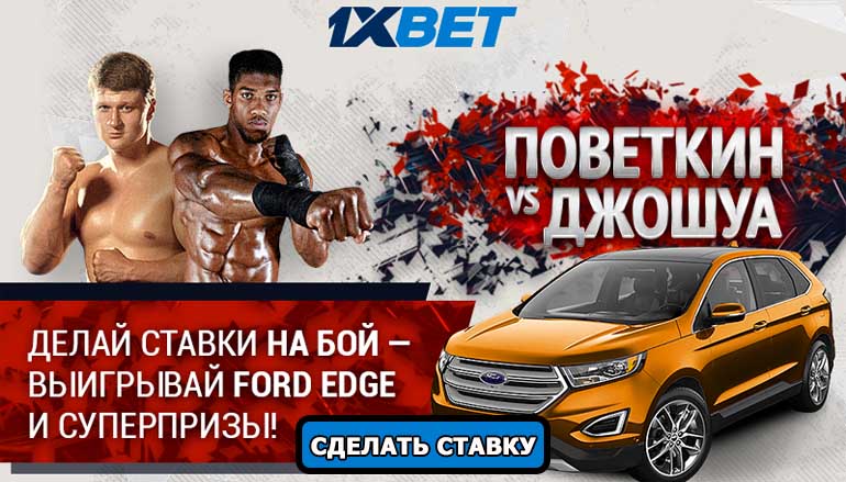 Болельщики бокса и игроки на сайтах онлайн ставок на спорт в России в предвкушении очередного громкого поединка! Не оставайся в стороне и внеси свою лепту в предстоящую битву, которая состоится уже на следующей неделе. Прими участие в промо акции онлайн азартных игр и выиграй автомобиль и другие призы за ставку на бой Поветкин — Джошуа в 1хБет Спорт (1xBet Sport)! Не пропусти крутой розыгрыш призов и возьми лучший приз этого бонусного предложения онлайн букмекера!