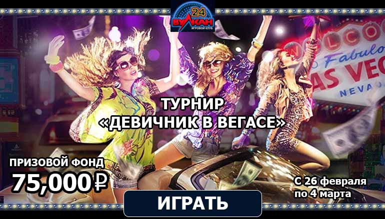 Турнир «Девичник в Вегасе» продлится одну неделю – с понедельника, 26 февраля, до воскресенья, 4 марта. Для того, чтобы принять участие в данной промо акции онлайн казино Вулкан24, Вам нужно сыграть 25 квалификационных раундов на турнирных слотах. При этом размер минимальной ставки составляет 20 рублей. После квалификации продолжайте играть на 15 игровых автоматах, задействованных в турнире. Чем больше сумма ставок, тем больше у Вас турнирных очков и тем выше место в рейтинге участников.