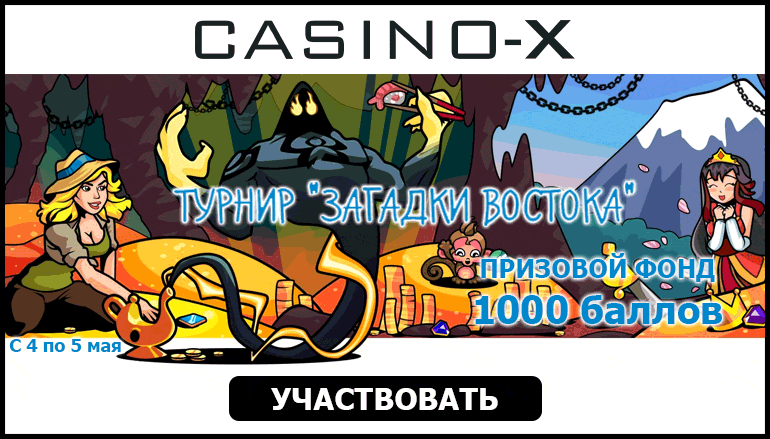 Турнир «Загадки Востока» в казино Икс проводится с пятницы по субботу еженедельно! В помощь тебе включена функция «Бустеры». Именно эта опция позволит получать больше турнирных очков. В этой схватке проиграть просто невозможно! Играй, следи за результатами игры в турнирной таблице и получай до 1000 комп-поинтов в турнире «Загадки Востока» в казино Икс!