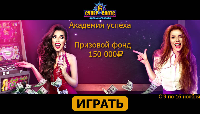 Считаете, что умение выигрывать на слотах это такая же наука, как физика, математика или квантовая механика? Тогда добро пожаловать в Академию успеха! С 9 по 16 ноября казино Супер Слотс (Casino Super Slots) проводит увлекательный турнир «Академия успеха». Здесь нет старых профессоров, скучных лекций и пыльных библиотек, лишь азарт и адреналин! Только в этой уникальной академии самым старательным студентам выдают денежные призы! Используйте все свои знания и навыки для того, чтобы выиграть до 150 тысяч рублей в «Академии успеха» казино Супер Слотс!