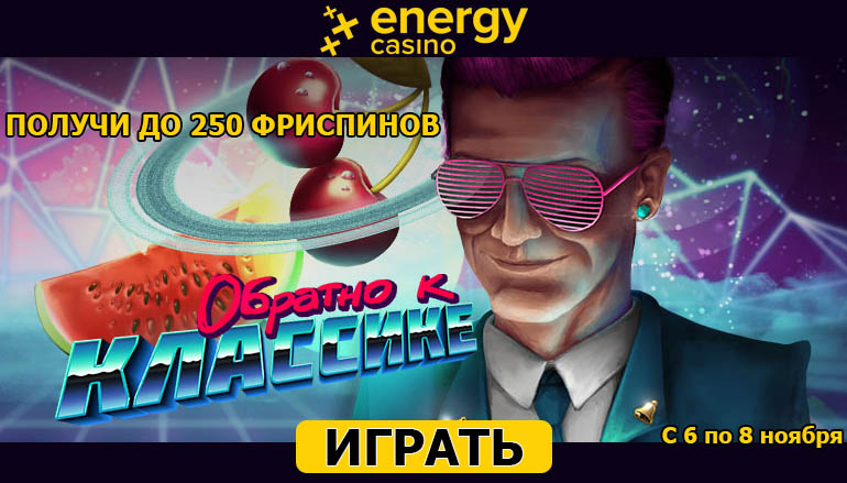 Выиграй до 250 бесплатных спинов в турнире «Обратно к классике» в казино Энерджи!