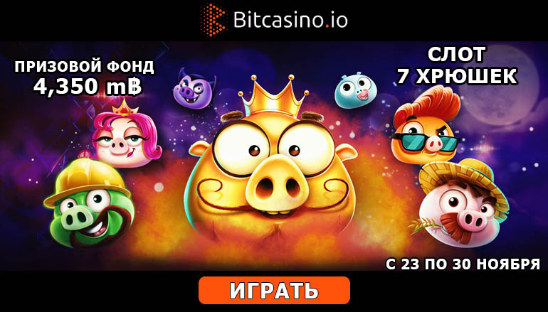 Хочешь, чтобы хрюшки и тебе подкинули криптовалюту? Тогда зарегистрируйся на сайте БитКазино, чтобы стать полноправным участником промо акции! Только в период с 23 по 30 ноября 2017 года ты можешь получить до 4,350 mBTC на слоте «7 хрюшек» на сайте БитКазино! Это захватывающее соревнование продлится ровно неделю, ты не можешь его пропустить! Все, что нужно сделать, просто играть в это новое онлайн азартное развлечение и собирать бесплатные игры.
