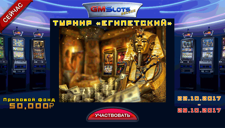 Почувствуй себя в одном из самых излюбленных историками и путешественниками мест — Древнем Египте. Зарегистрируйся на сайте онлайн казино ГМС Делюкс, чтобы стать участником специальной промо акции. Этот «Египетский» турнир может не на шутку обогатить тебя. Для этого понадобится сделать 50 денежных ставок, после чего перед тобой распахнется турнирная сетка.