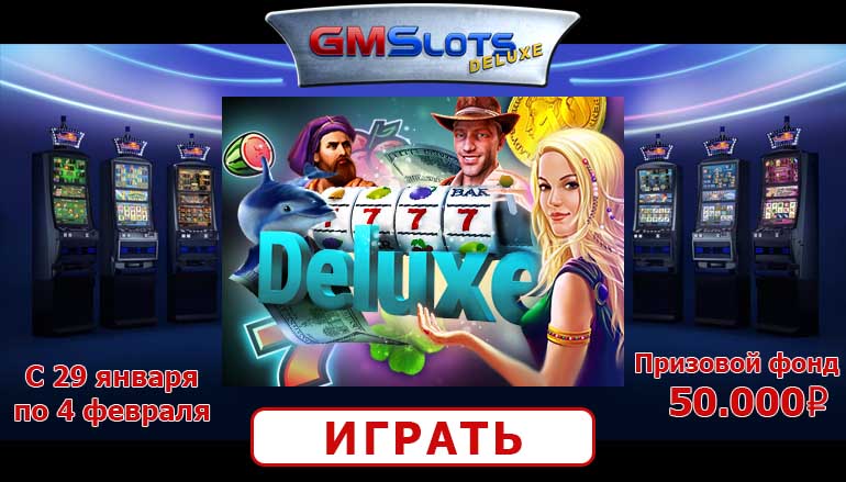 Турнир «Deluxe» проходит с понедельника, 29 января, по воскресение, 4 февраля. Весь период проведения данной промо акции онлайн казино казино ГМС Делюкс Вам необходимо играть на турнирных слотах. Неважно, какой из игровых автоматов Вы выберете, любой из них принесет Вам удовольствие от игрового процесса и шанс выиграть часть призового фонда.
