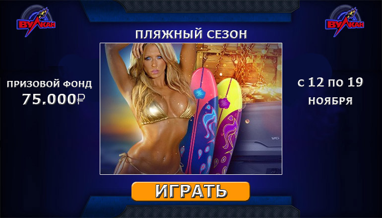 Хотите провести эти холодные ноябрьские дни на берегу моря? Мечтаете о пляжном отдыхе в то время, когда все готовятся к Новому году? Специально для Вас в казино Клуб Вулкан (Club Vulkan Casino) проходит турнир «Пляжный сезон»! Вас ждут превосходные песчаные пляжи, красивые девушки в бикини и освежающие коктейли. Всю эту неделю Вы сможете наслаждаться отдыхом на морском побережье, и заодно попытаться выиграть денежные призы. В турнире «Пляжный сезон» от казино Клуб Вулкан разыгрывается 75 тысяч рублей! У каждого посетителя сайтов онлайн казино в России есть шанс получить часть этого щедрого призового фонда!