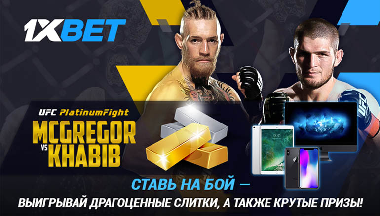 До самого громкого поединка этой осени остались считанные дни! Макгрегор и Нурмагомедов сойдутся на ринге уже 6 октября. Ты тоже можешь принять участие в этом поединке, сделав свою ставку на странице онлайн букмекера 1хБет Спорт. Более того, ты не только пополнишь кошелек, но и примешь участие в розыгрыше самых разнообразных и крутых призов! Слиток платины, золота и серебра, iMac Pro, смартфон iPhoneX, планшет iPad Prо, смартфон iPhone 8+ и многое другое может стать твоим!