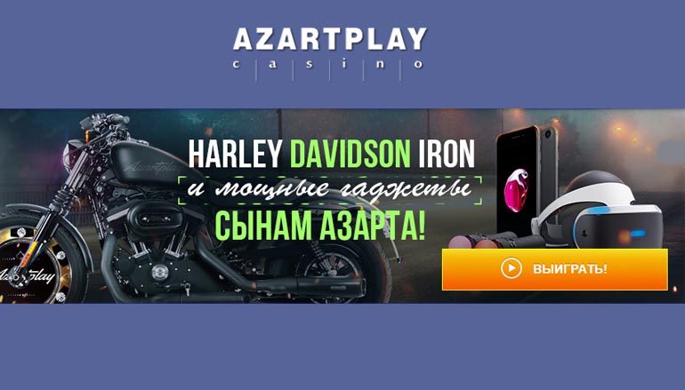 Чего еще ждать? Начинайте игру еще сегодня, примите участие в масштабной лотерее казино Азарт Плей с общим призовым фондом 1,5 млн рублей и встречайте май на крутейшем Харли-Дэвидсоне! Не пропустите этот шанс стать крутым байкером и обладателем мощнейших гаджетов!