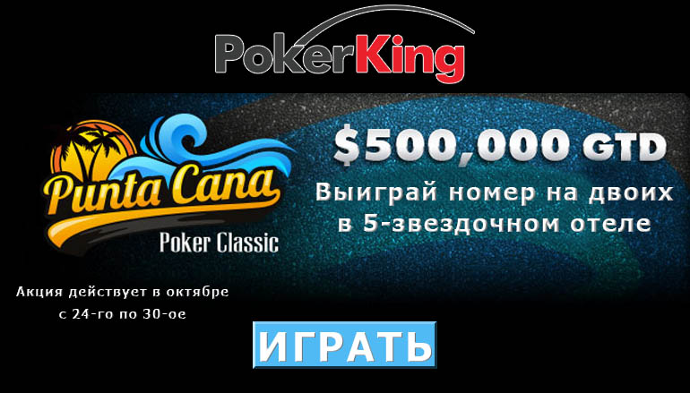Тебя будут ждать 6 ночей на двоих в пятизвездочном отеле The Level в Melia Caribe Tropical. Более того, счастливчикам промо акции онлайн казино предоставят 800 долларов на дорогу, бесплатный гольф, спа и многое другое. А чтобы все это получить, понадобится принимать участие в сателлитах каждое воскресенье на сайте онлайн покера ПокерКинг. Накопливай очки в таблице лидеров King’s Treasure и начни битву за участие в восьмом ежегодном турнире в Пунта Кана! Событие будет проходит с 24 по 30 октября, значит действовать нужно уже сейчас!