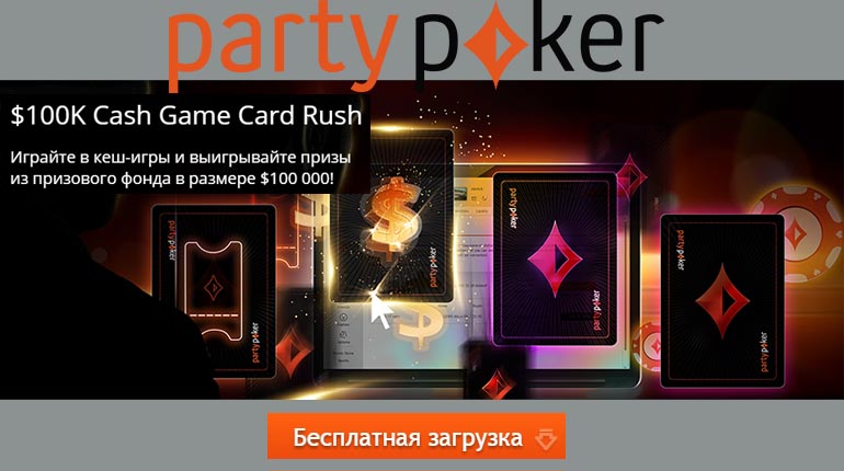Новая промо акция онлайн азартных игр под говорящим названием Cash Game Card Rush гарантирует приз в каждой скретч-карте! Вам предстоит лишь играть в кеш-игры на Парти Покер и получать самые разнообразные призы, в том числе – призовой VIP-пакет на любой из турниров partypoker live общей стоимостью в 8 тысяч долларов!