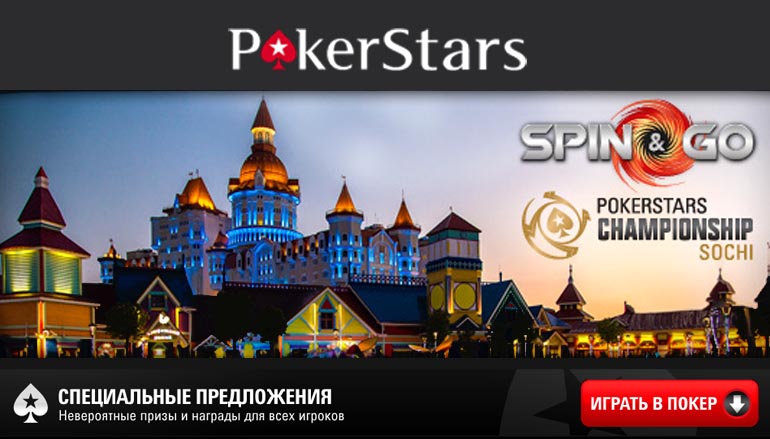 Всегда мечтали поиграть в покер с мировой элитой? Теперь у Вас будет возможность сделать это, не выезжая из России! Участвуйте в турнирах спин-энд-гоу и не пропустите возможность за считанные минуты выиграть поездку на покерный турнир в Сочи от Покер Старс!