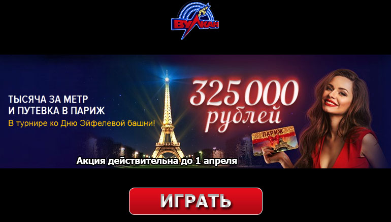 Если Вы мечтаете увидеть знаменитое творение собственными глазами, казино Клуб Вулкан (Club Vulkan Casino) поможет Вам. Принимайте участие в турнире ко Дню Эйфелевой башни, где разыгрываются не только денежные призы, но и путевка на двоих в Париж! Общий призовой фонд турнира составляет 325 тысяч рублей! Скорее присоединяйтесь к участникам соревнования и выигрывайте один из потрясающих призов!