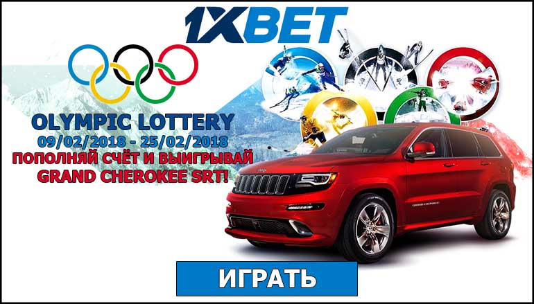 Проведи эту зимнюю олимпиаду наравне со спортсменами. Следи за участием своих фаворитов, делай свои прогнозы, а кроме этого принимай участие в лотерее. Тебя ждет глобальный розыгрыш призов! За первое место ты получишь в Олимпийской лотерее автомобиль от 1хБет Спортс марки GRAND CHEROKEE SRT! За серебряную строчку в таблице лидеров тебе достанется телевизор LG 84UB980V и закроет тройку лидеров смартфон iPhone X! Подарков хватит всем, ведь и бонусных баллов тоже еще никто не отменял! Болей за своих любимых спортсменов, участвуй в розыгрыше и выиграй в Олимпийской лотерее автомобиль от 1хБет Спортс!