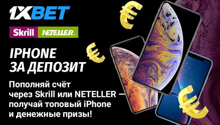 С 25 апреля по 29 сентября пополняя свой счет на сайте 1хБет через Skrill и Neteller, Вы получите шанс выиграть самые современные смартфоны: iPhone Xr, iPhone Xs и iPhone Xs Max, а также денежные призы на общую сумму в 45 тысяч евро. Как видите, все предельно просто! Участвуйте в новой суперакции от 1хБет и побеждайте, получая отличные призы!