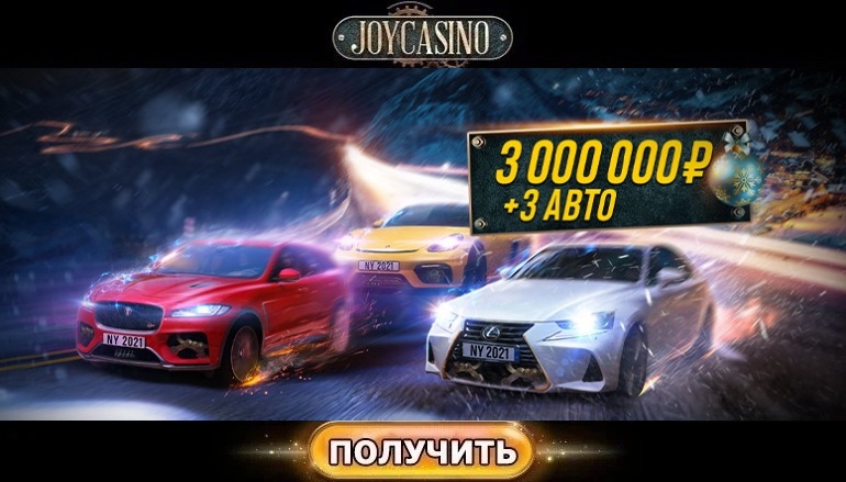 Весь декабрь заходите на сайт Джойказино (Joycasino), участвуйте в праздничных акциях и турнирах и собирайте лотерейные билеты. В новогоднюю ночь с боем курантов состоится розыгрыш денежных призов на сумму 3 миллиона рублей. А троим счастливчикам достанутся шикарные машины: Porsche, Jaguar и Lexus! В Новый год на новом автомобиле!