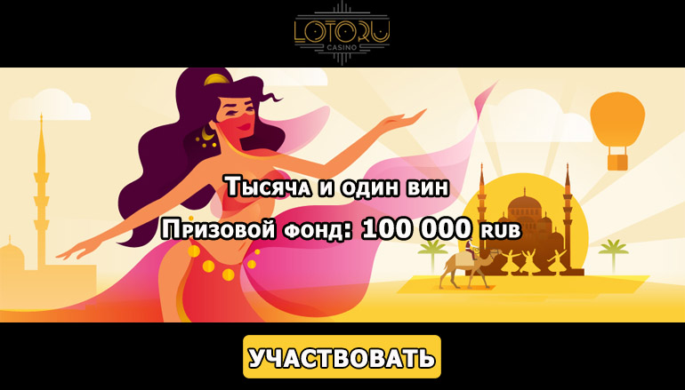 Для того, чтобы принять участие в турнире «Тысяча и один вин», Вам необходимо зарегистрироваться на сайте казино ЛотоРу. Соревнование проходит в период с 18 по 25 октября. Все это время активно играйте на любом из 206 турнирных слотов, делая ставки размером от 9 рублей. Все игры доступны как на ПК, так и в мобильной версии сайта казино ЛотоРу.