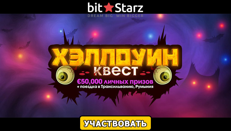 Казино БитСтарз (BitStarz Casino) объявляет о начале фестиваля ужасов. В этом октябре игорное заведение запускает масштабную промо акцию. Вас ждут 40 уровней в устрашающем турнире под названием «Хэллоуин квест». Не упустите шанс выиграть часть огромного призового фонда размером в 50 тысяч евро! А одному из счастливчиков достанется главный приз – волнующая поездка на двоих в Трансильванию!