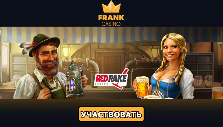 С 29 августа по 12 сентября заходите на сайт казино Франк (Frank Casino), где проходит увлекательный турнир для всех любителей пива. Наслаждайтесь слотами компании Red Rake Gaming и получайте лотерейные билеты. Играйте активнее и возможно именно Вам достанется потрясающий приз – путешествие на двоих на Октоберфест от казино Франк!