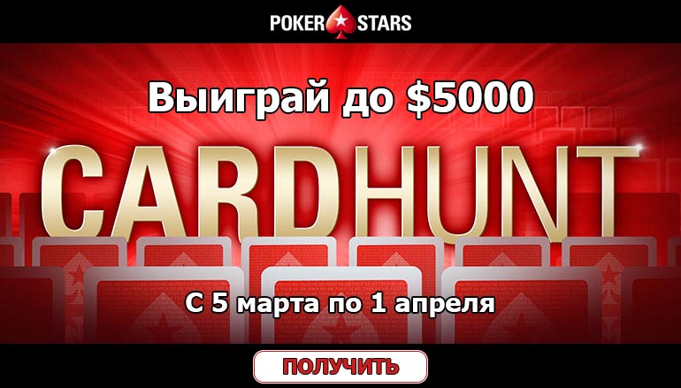 Устаешь на работе и хочешь расслабиться без ущерба для кошелька? Сорвать огромный куш, не выходя из дома, вполне реально на сайтах онлайн покера в России! Это не только можно сделать этой весной, но и нужно, чтобы начать сезон в самом лучшем расположении духа и толстым кошельком! Тебе больше не придется отказывать себе в чем-то, ведь ты можешь получать до 5 тысяч долларов каждый день в Покер Старс (Poker Stars)! Тебя ждет увлекательная погоня за завидным выигрышем в специальной промо акции «Охота на карты».