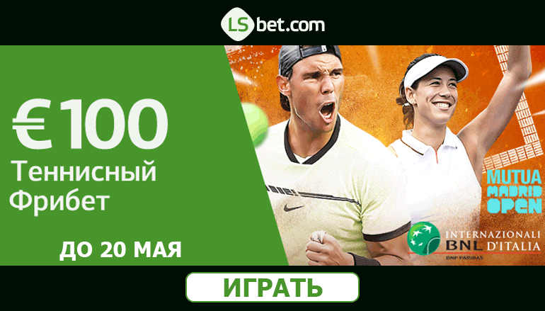 Следи за играми Мадрид Опен (Madrid Open) и Рим Мастерс (Rome Masters), не забывая делать на них онлайн ставки! События уже начались, а значит надо скорее успеть стать участником промо акции, чтобы заработать свой бонус и денежное вознаграждение в размере 100 евро! Не упусти свой шанс заработать на любимом спорте с онлайн букмекером ЛСбет Спорт и получить массу бонусов!