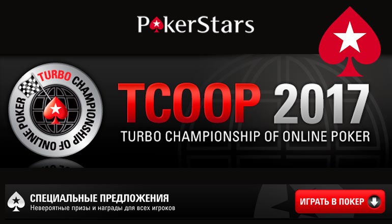 Попасть на главное событие TCOOP-2017 от Покер Старс и выиграть часть более чем двухмилионного призового фонда еще никогда не было так реально! Всего за 20 долларов и несколько минут игры Вы можете выиграть билет на турбо чемпионат онлайн покера Покер Старс!