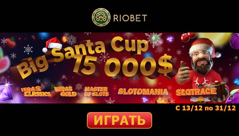 Уже ждешь, когда же к тебе придет Дед Мороз с мешком подарков? Весь год ты вел себя хорошо и играл на сайтах онлайн азартных игр в России? Продолжай в том же духе, и тогда самый большой подарочный мешок достанется именно тебе! Прими участие в промо акции и получи главный приз фонда до 15 тысяч долларов в новогодних турнирах казино РиоБет! Накопи максимальное число пунктом лояльности (СР) и окажись в числе 20 счастливчиков, чтобы получить свой денежный подарок от РиоБет (RioBet casino).