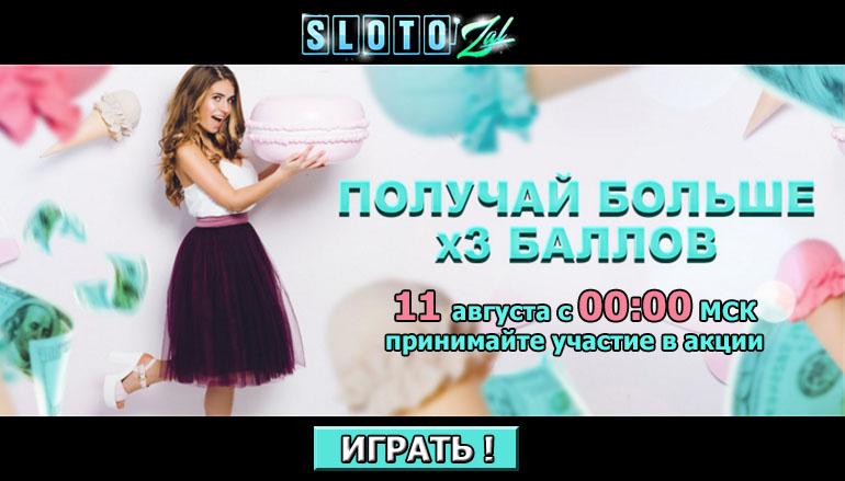 Долгожданный конец рабочей недели! Трудовой настрой на спаде, силы на исходе, все мысли заняты предстоящим уикэндом! На помощь Вам приходит уникальное предложение от онлайн казино Слотозал! Проведите пятницу с пользой и удовольствием! Только 11 августа примите участие в уникальной пятничной промо акции от казино Слотозал и получите возможность заработать втрое больше баллов, играя на любимых игровых автоматах!