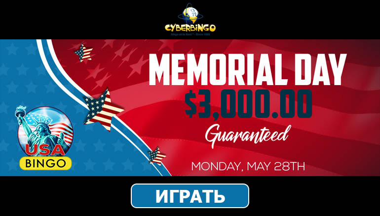 28 мая — это особенный день в Соединенных Штатах Америки, это день памяти о погибших в войне солдатах. Выразить дань уважения предлагает сайт онлайн бинго с помощью промо акции, которая позволит тебе вспомнить то, о чем мы ненароком забываем. Присоединись к остальным азартным игрокам в комнате бинго в этот понедельник и отметь этот важный день, который принесет тебе 13 тысяч долларов от казино Кибер Бинго!