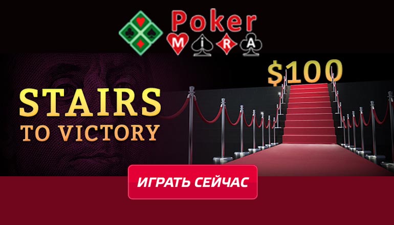 Двигайтесь вверх по «Лестнице победы», и на вершине Вас ожидает невероятный приз в размере 100 долларов по акции фри кэш от Покер Мира!
